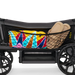 The Cargo Net secures to the Veer Cruiser side wall with two elastic loops on top and two Velcro sinch straps at the bottom.